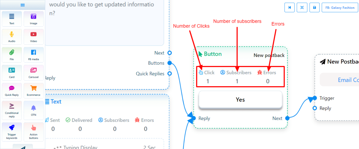 Manage post back actions with ease using Postback Manager. Set up actions that occur when users interact with your bot's postback buttons.